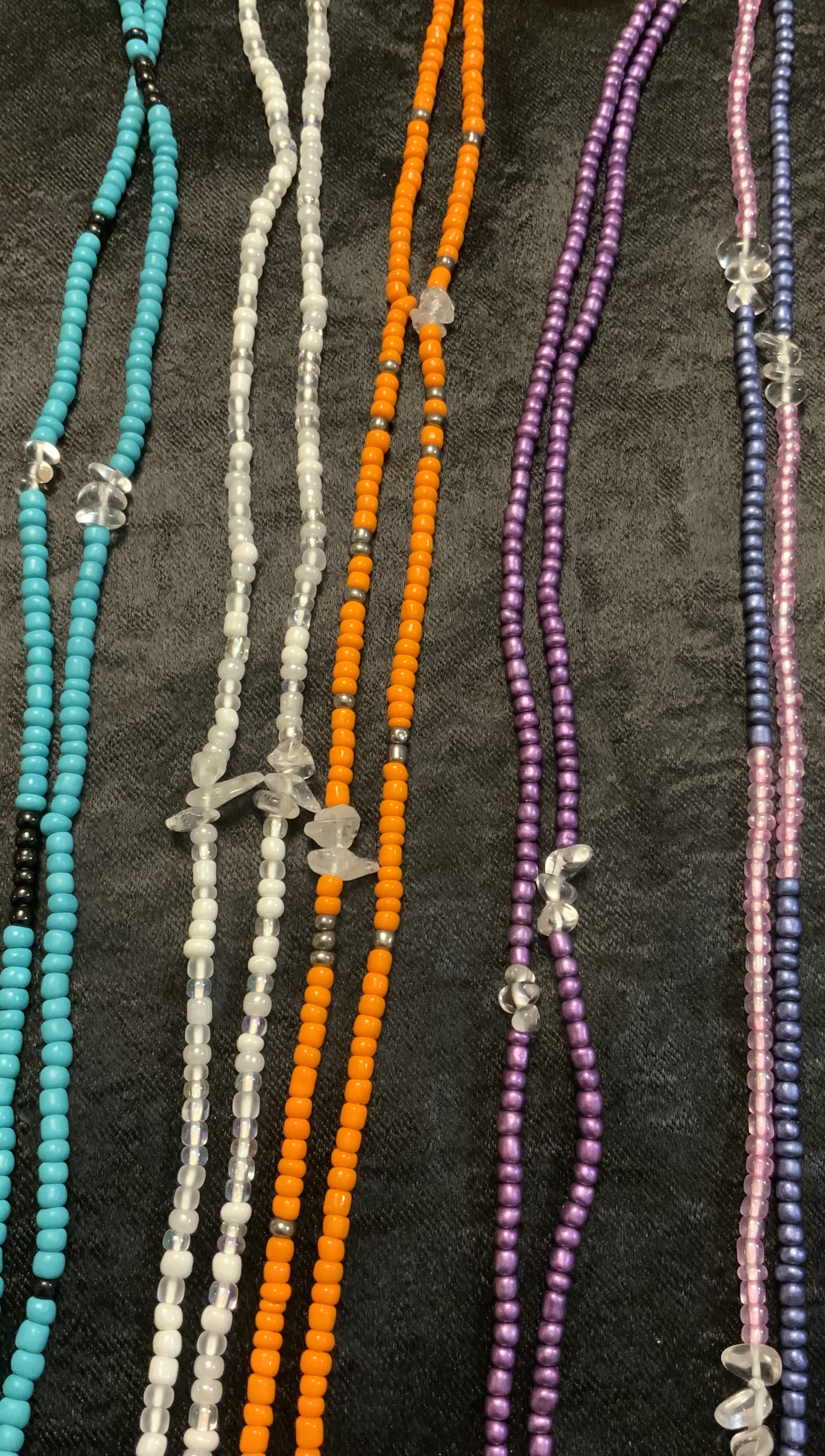 Waist Beads have been worn by African Woman for centuries. They can be warn for various reason. Spiritual purposes, Manifestation, Weight Management, Fashion. These are Traditional Tie-On waist beads. NO Elastic!