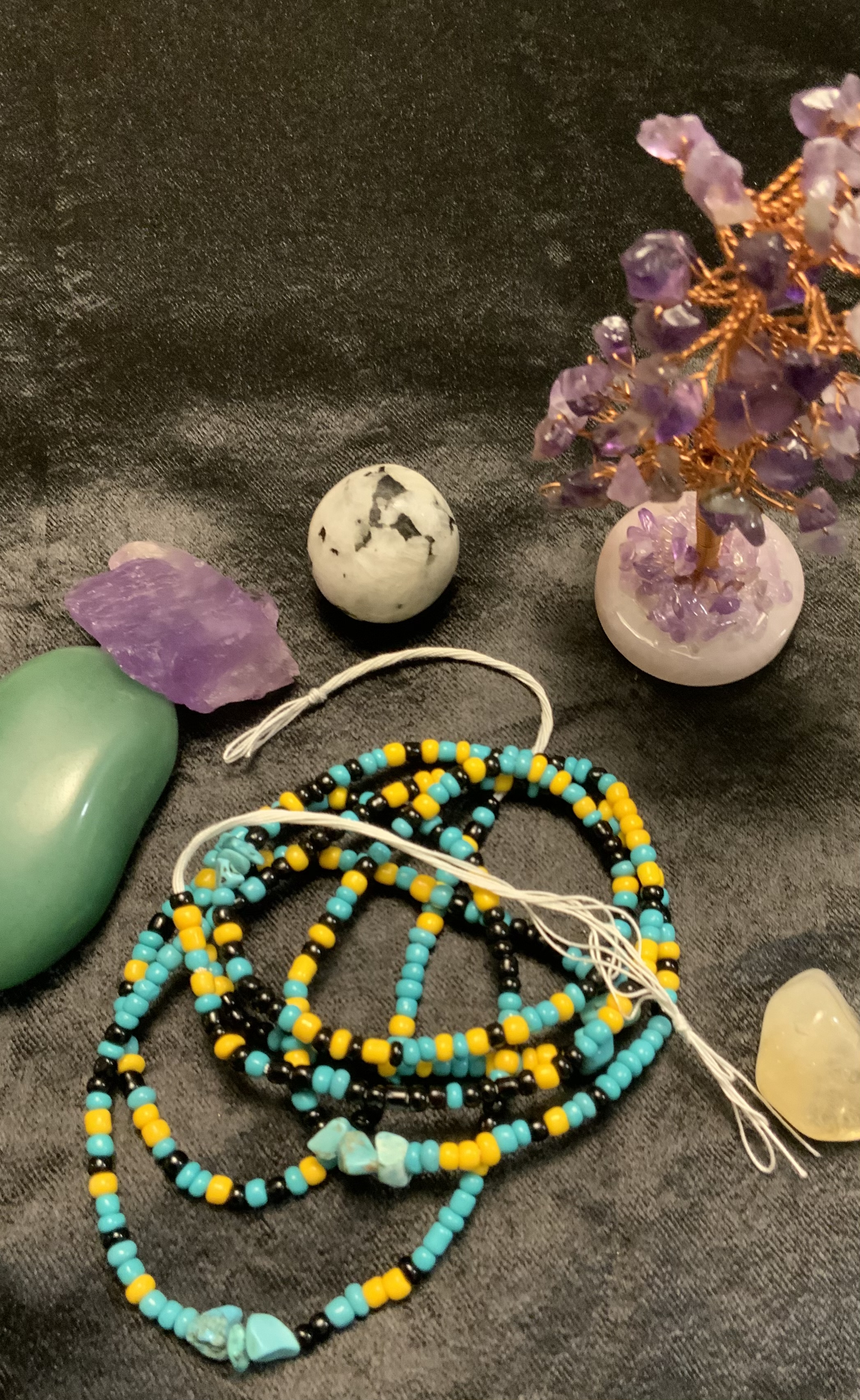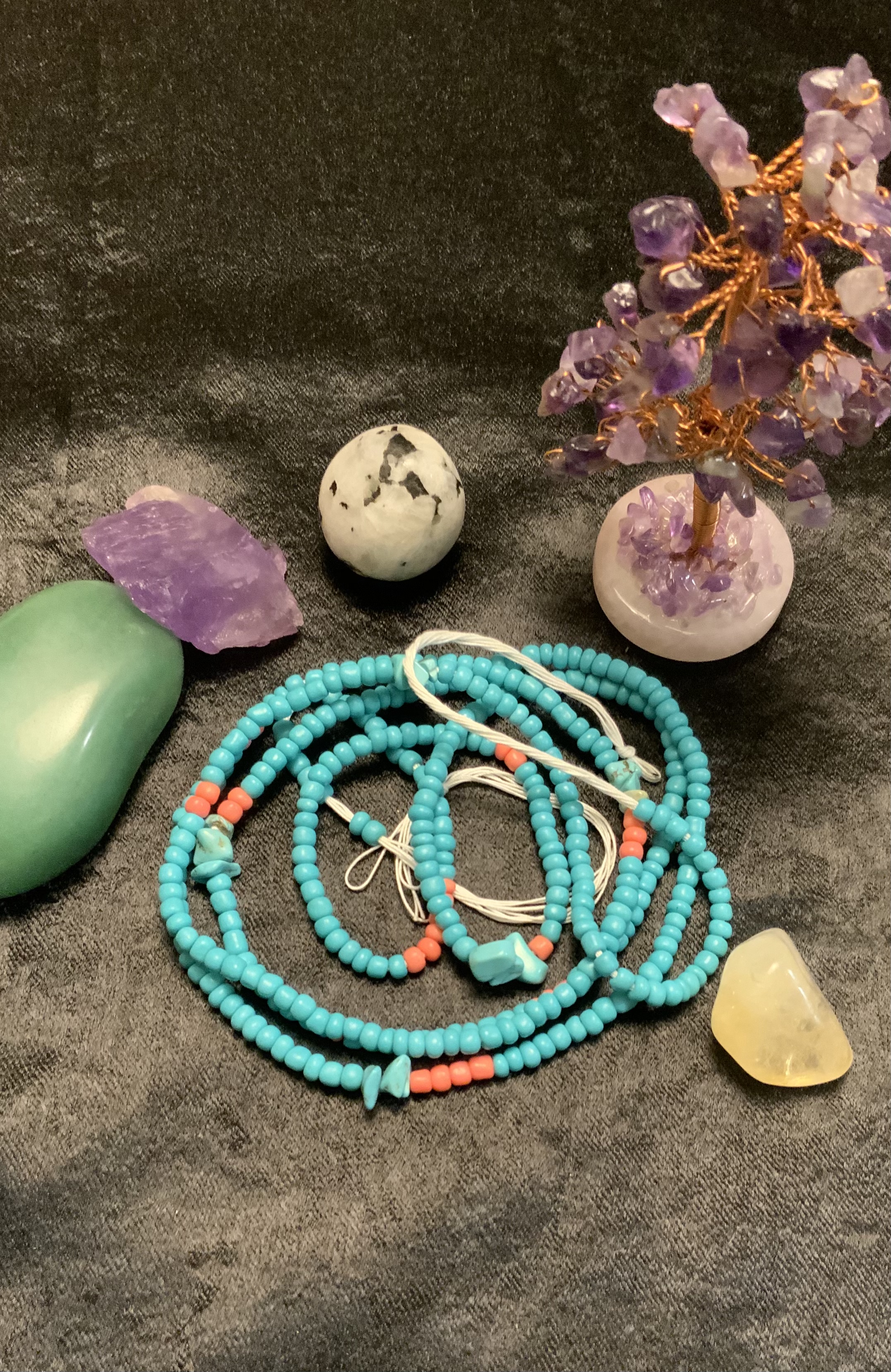 Waist Beads have been worn by African Woman for centuries. They can be warn for various reason. Spiritual purposes, Manifestation, Weight Management, Fashion. These are Traditional Tie-On waist beads. NO Elastic!