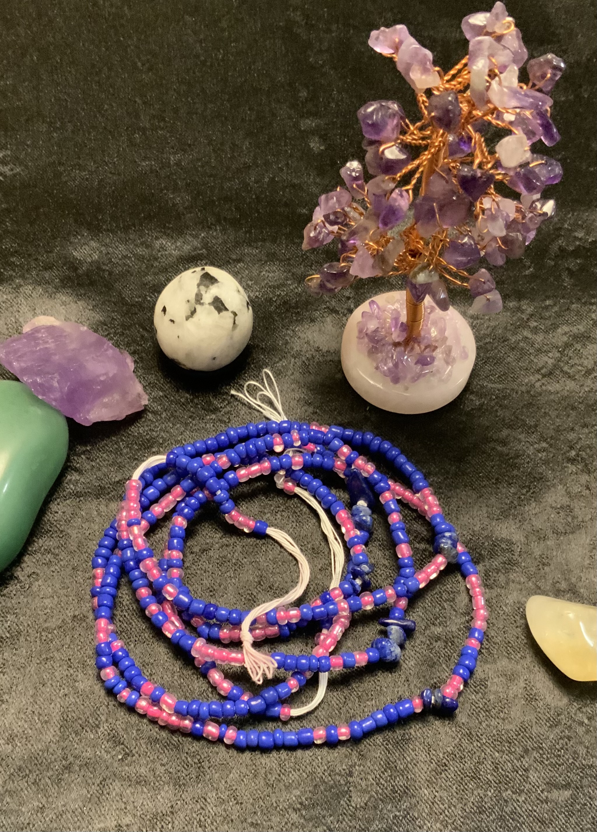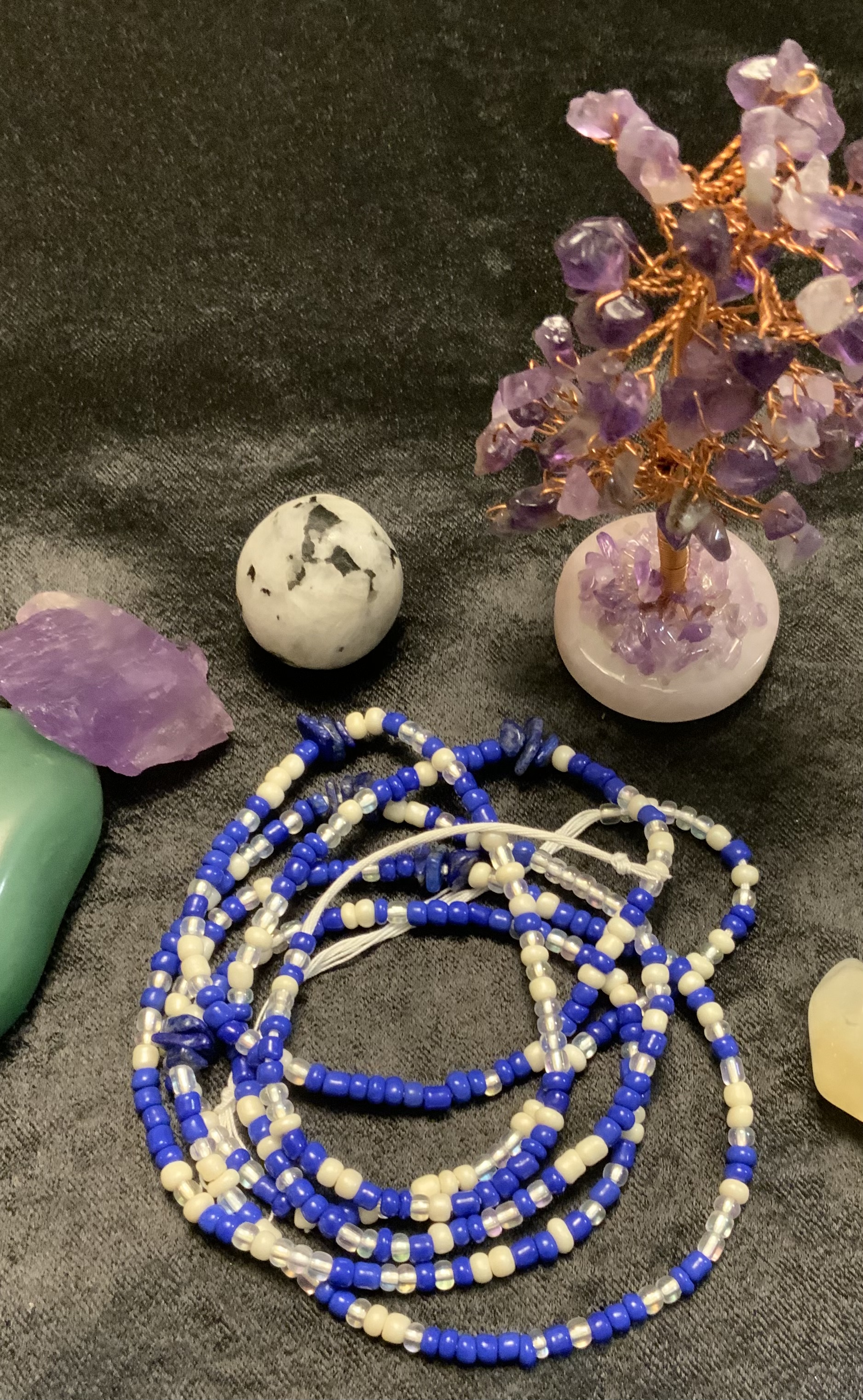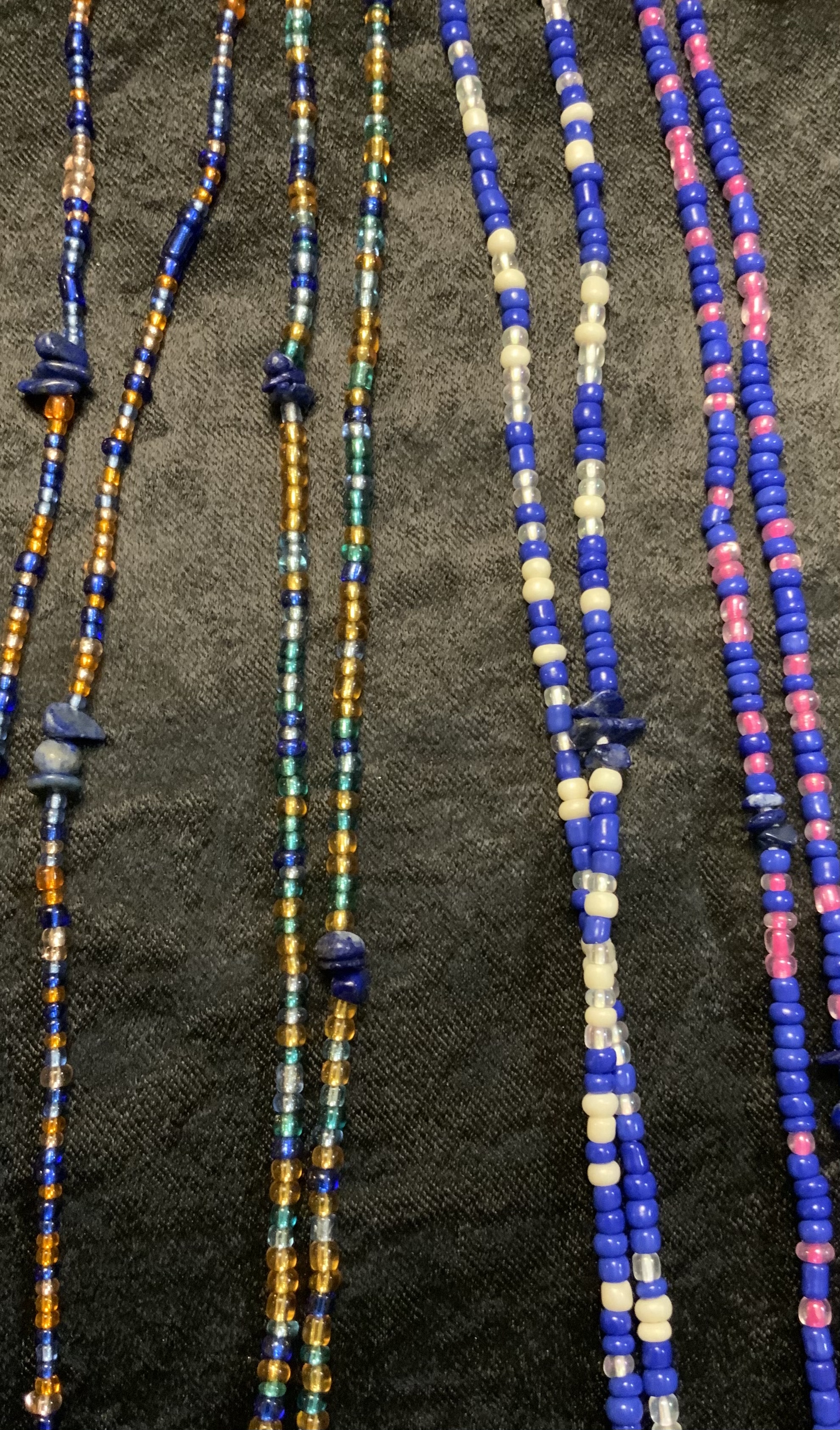 Waist Beads have been worn by African Woman for centuries. They can be warn for various reason. Spiritual purposes, Manifestation, Weight Management, Fashion. These are Traditional Tie-On waist beads. NO Elastic!