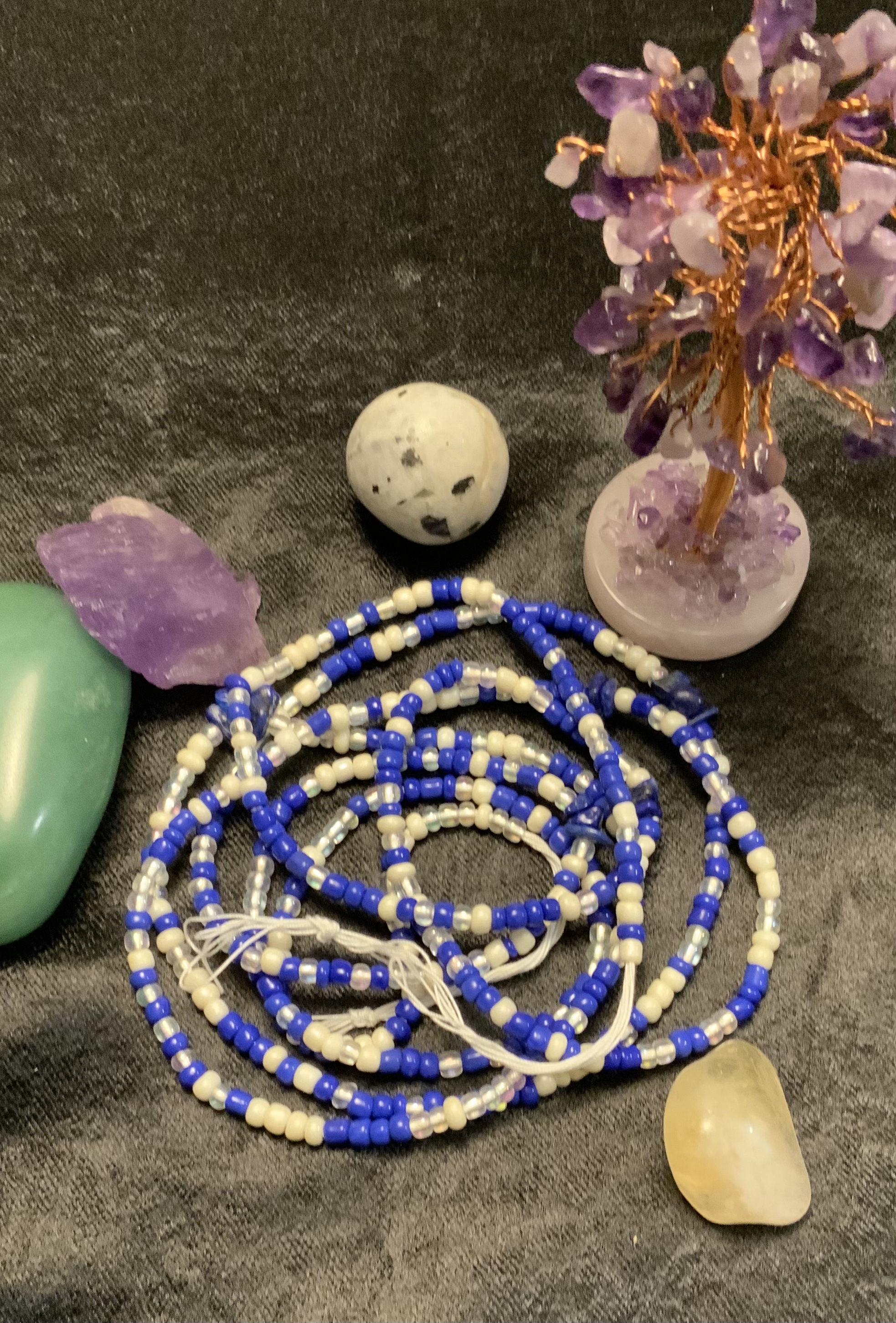 Waist Beads have been worn by African Woman for centuries. They can be warn for various reason. Spiritual purposes, Manifestation, Weight Management, Fashion. These are Traditional Tie-On waist beads. NO Elastic!
