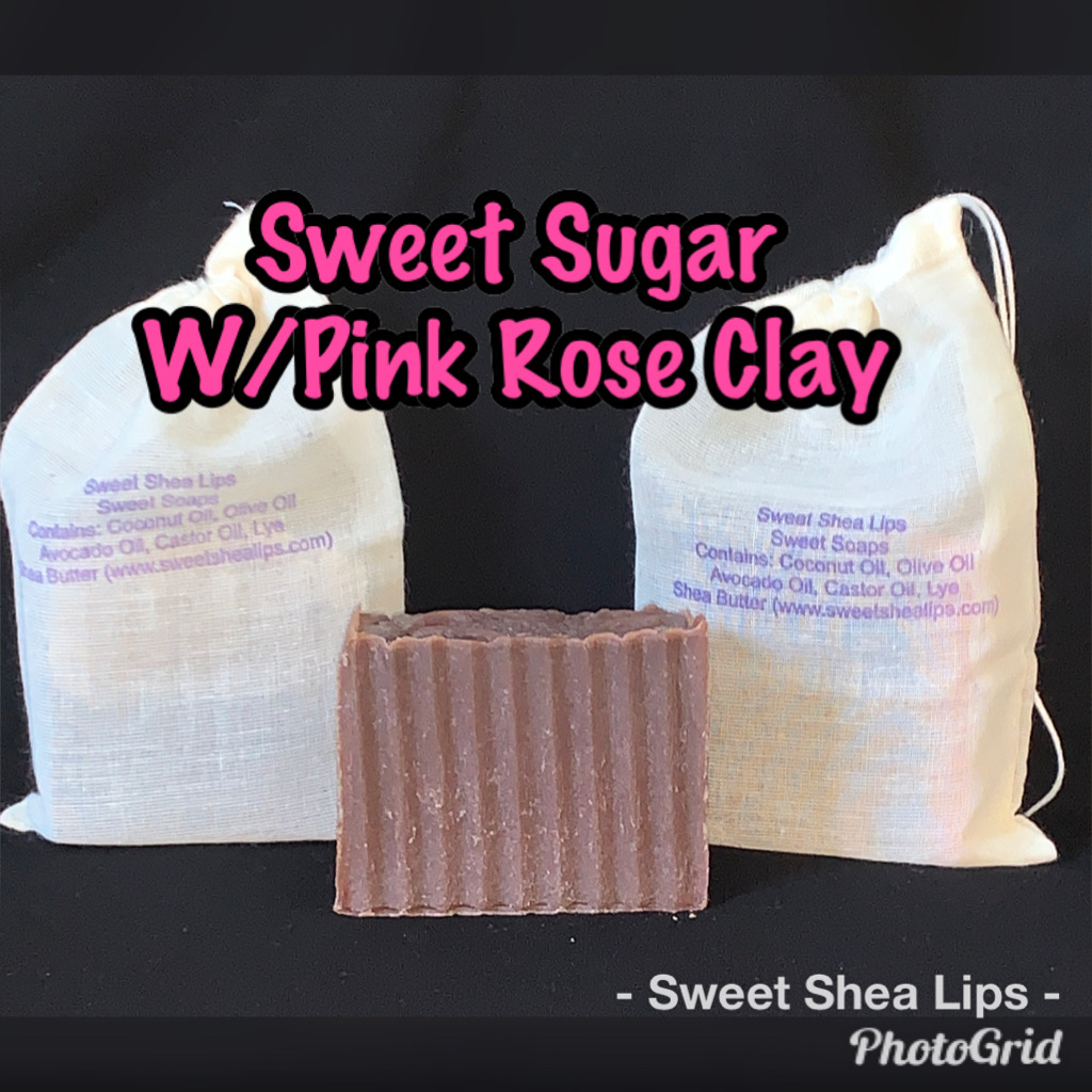 Cold Process Soap with Shea Butter, Buttermilk and other oils; fragranced Sweet scent that reminds me of cotton candy and vanilla! Pink Rose clay has been added to this luxurious bar. It’s so girly!!!. Each Bar is hand cut and cures for at least 4 weeks. Contact Sweet Shea Lips for Entire Loaf purchases.