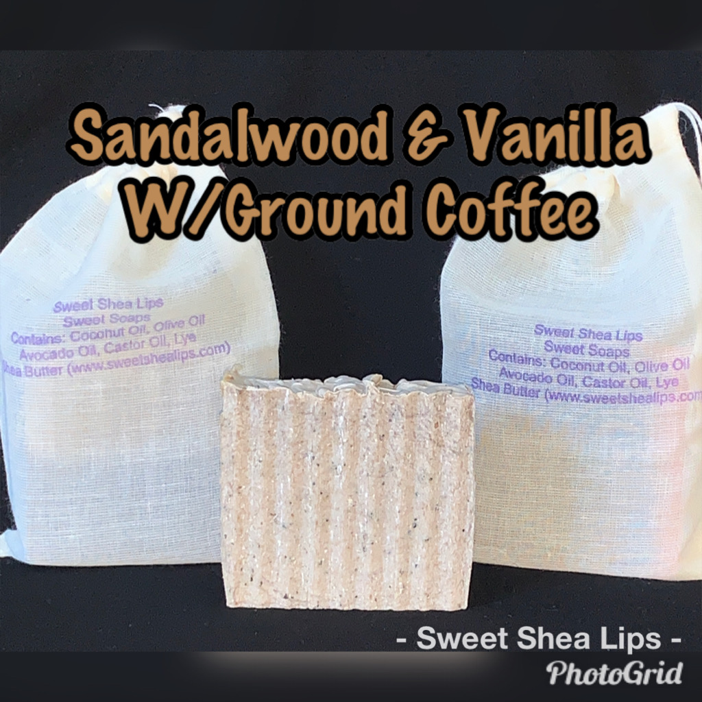 This handmade cold process soap is fragranced with Sandalwood & Vanilla with ground coffee added! Makes a great natural exfoliate!