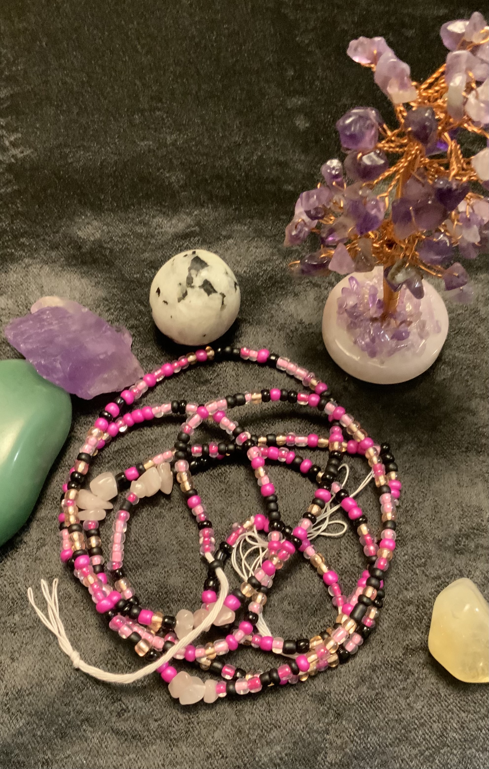 Self Love Waist Beads (Rose Quartz) Fits waist sizes up to 48’-50’
